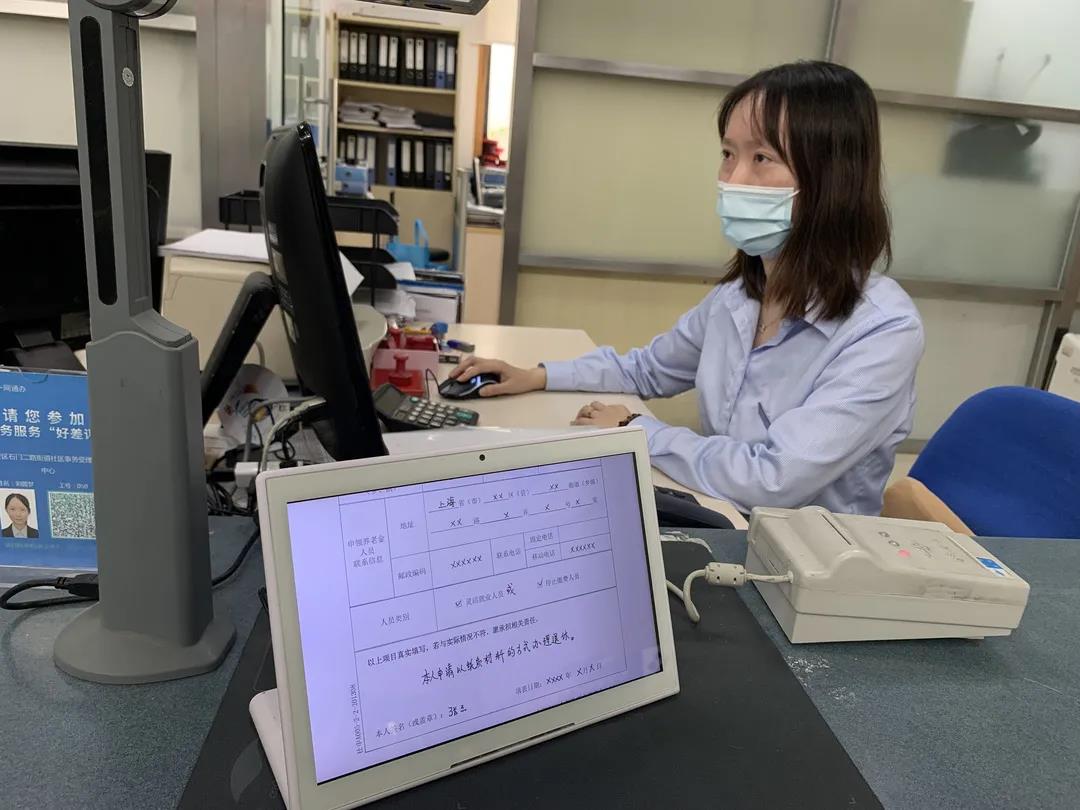 周女士今天来到受理中心办理退休手续。工作人员在核对了周女士提交的申请材料后,请其本人填写《养老金申领表》和《领取养老金方式确认表》,并签字确认。正当周女士想咨询工作人员具体填写细节时,工作人员已经将评价器界面切换至样表推送界面,为周女士直观地呈现出这两张表格的填写模板。对此周女士颇感欣喜,“以前来受理中心办理业务,填表的时候,经常会遇到各种不确定的地方需要一个个问工作人员,费时又费力。现在,有了这个新功能,就可以轻松搞定所有表格了。”为周女士办理退休的工作人员陆小姐也表示,“以前在办理业务的过程中,居民填写表格环节往往需要花费大量时间,尤其是老年居民,有时要填写几遍才能填对。如今有了智能样表推送功能,大大缩短了居民填写表格的时间,同时填好的表格也更规范更整洁了,提高了办事效率,缩短了后续居民的排队等待时间,获得了居民的一致好评。”